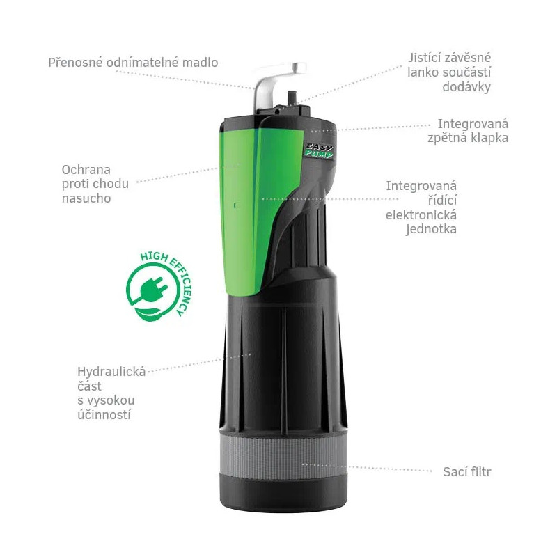 Vícestupňová ponorná čerpadla s integrovanou elektronikou pro automatické zapínání a vypínání. Čerpadlo je určeno pro obecné zásobování vodou, zahradní zavlažování a čerpání ze studní a dešťových jímek.