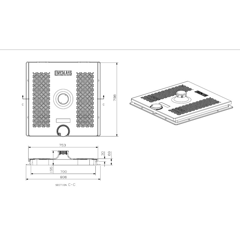 Poklop KOMPOZIT 700 x 700 mm, A 15 - s odvětráním