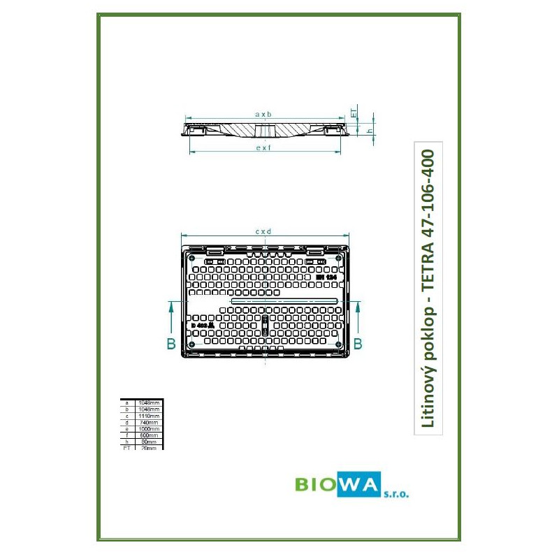Litinový poklop TETRA 1000 x 600 mm - D 400 - proti vzedmutí
