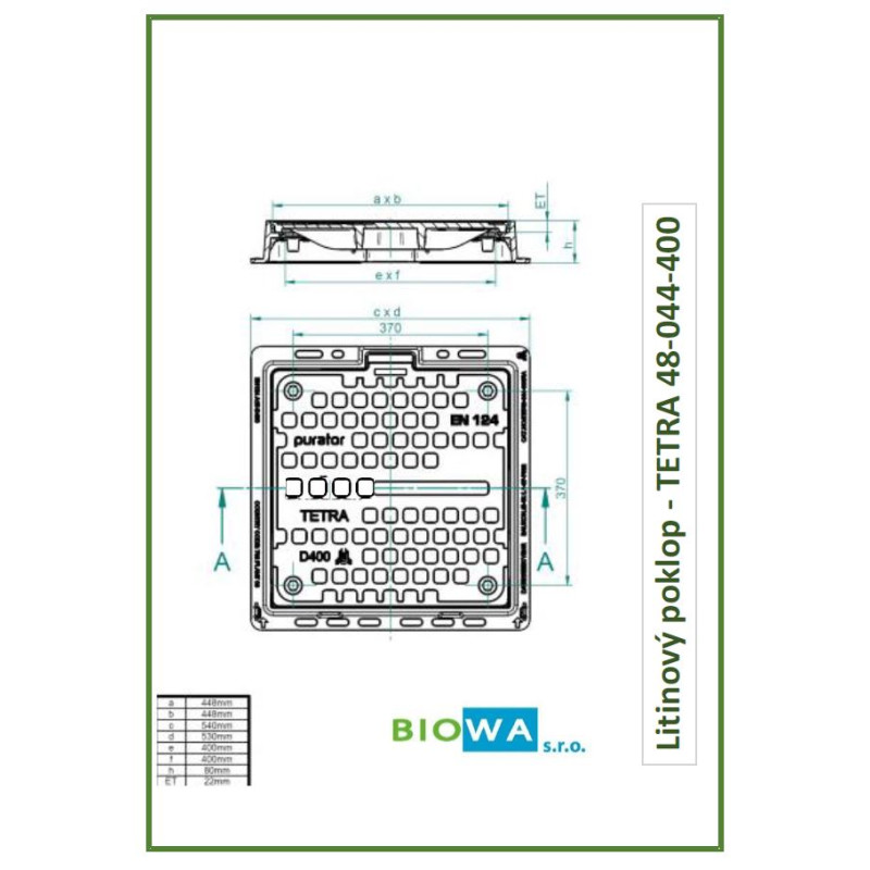 Litinový poklop TETRA 400 x 400 mm - D 400 - vodotěsný