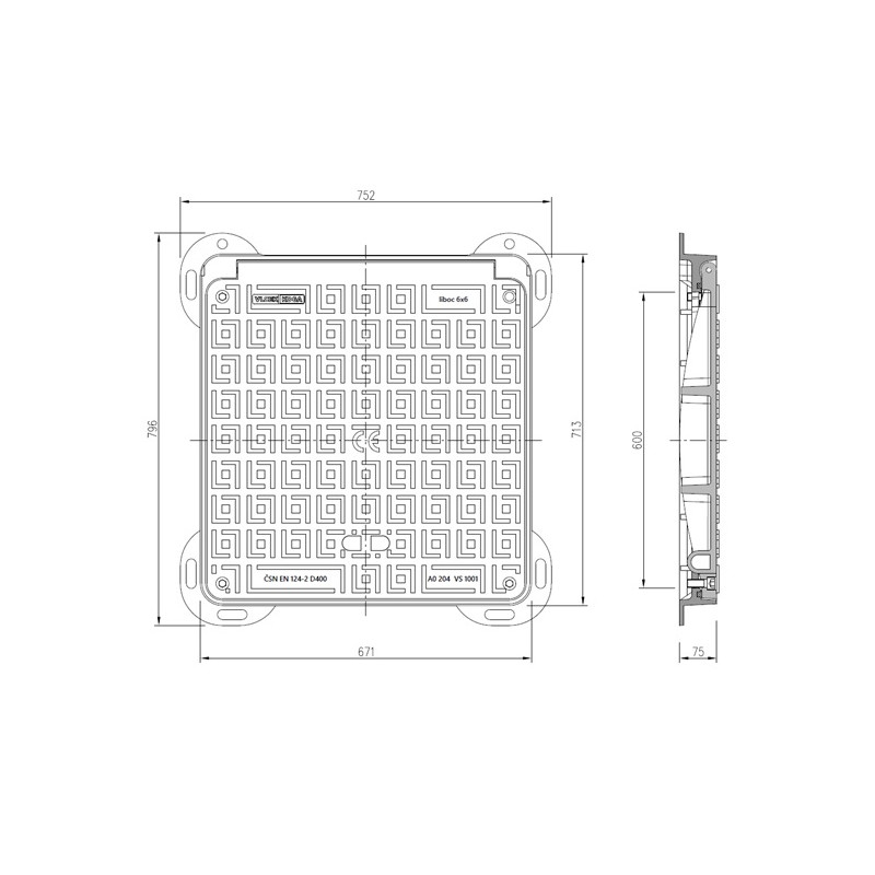 Poklop litinový LIBOC 600 x 600 mm D 400