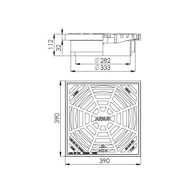 Vtoková "plovoucí" mříž s čtvercovým rámem ARNUS je určena k odvodu povrchových vod z venkovních ploch do prostoru kanalizačních revizních šachet o průměru 315 mm spadajících pod třídu zatížení D 400 podle ČSN EN 124:1996. Nezatěžuje spodní část šachty a je možno ji použít i u vozovek ve spádu až do 7°.