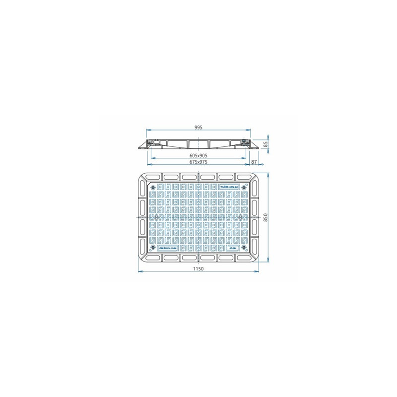 Litinový poklop ODRA Vnější rozměr: 1150 x 850 mm Vnitřní rozměr: 900 x 600...