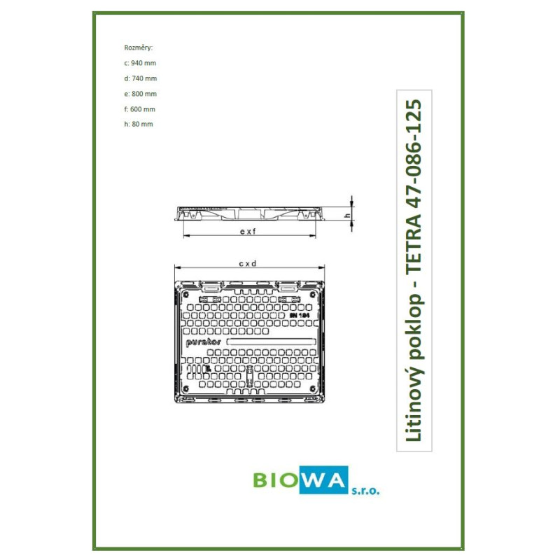 Litinový poklop TETRA 800 x 600 mm - B 125 - vodotěsný