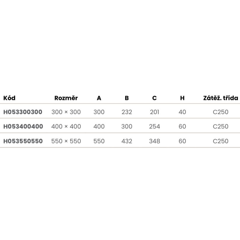 Vnější rozměry (A): 300 x 300 mm Vnitřní rozměry ( B světlost) : 232 x 232...
