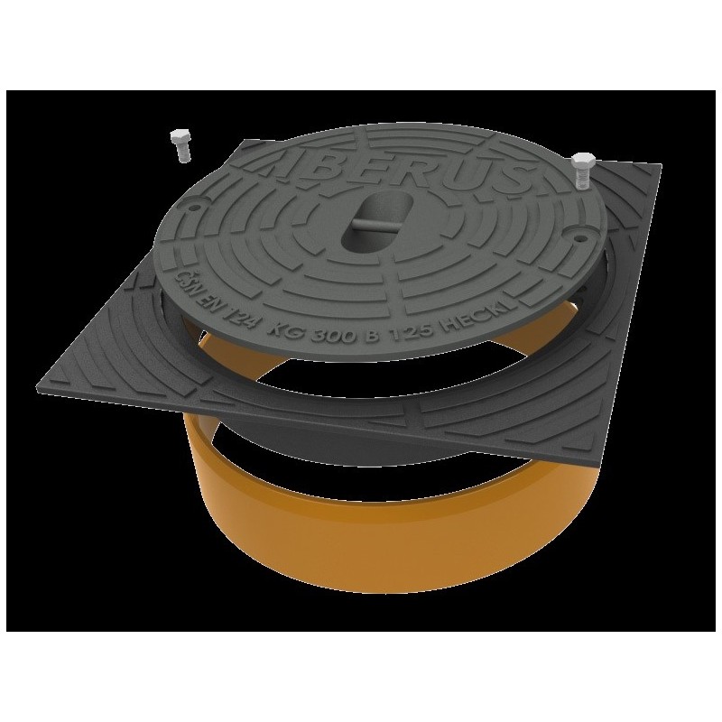 Šachtový poklop IBERUS s čtvercovým rámem je ideální řešení pro zakrytí revizních kanalizačních šachet s průměrem 400 mm. Tento poklop je vybaven čtvercovým rámem a snadno se instaluje nasazením na hladký konec roury. Je navržen tak, aby splňoval požadavky na vysokou nosnost – třída zatížení B125 zajišťuje maximální zatížení 12,5 tun, což jej činí vhodným pro instalaci v chodnících, pěších zónách nebo na parkovištích osobních automobilů.