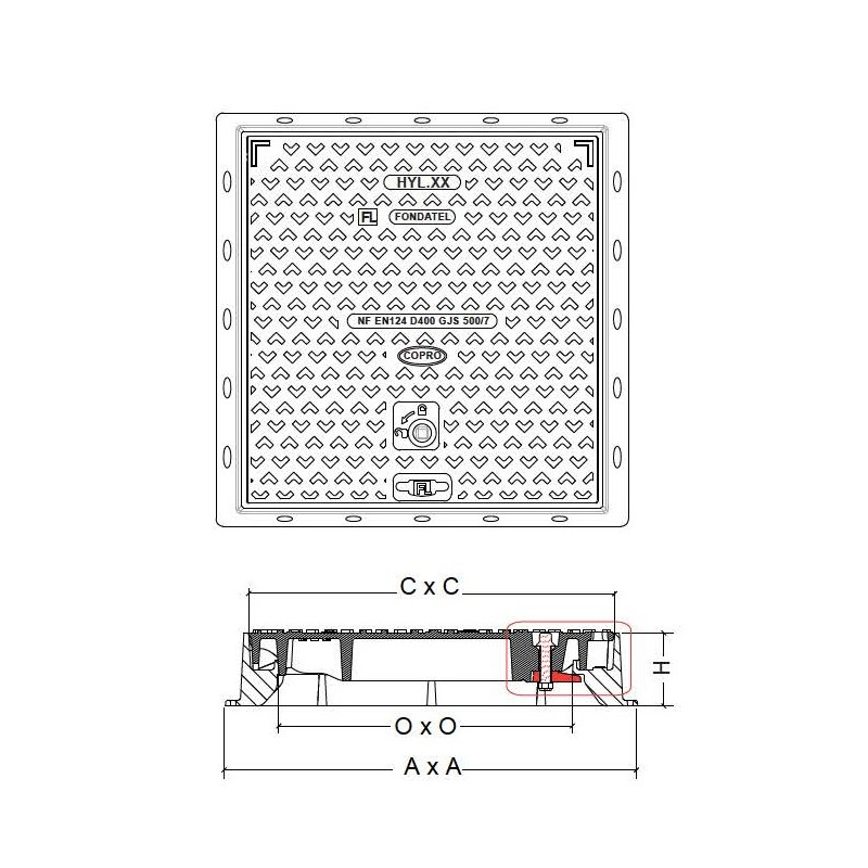Povrchový vzor poklopu je protiskluzný a nehlučný.